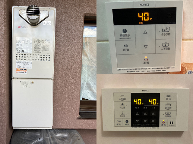 兵庫県宝塚市にて屋外式給湯器交換 ノーリツ高温差し湯給湯器24号GQ-2427AWX-T-DX