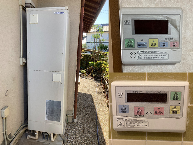 奈良県奈良市の戸建て住宅にて電気温水器からエコキュートへ取替え(交換)の工事をいたしました。コロナ電気温水器460Lフルオート UWH-46S18AD2U から、ダイキンエコキュート370Lフルオート EQN37ZFV へ交換をいたしました。年間給湯効率3.5、給湯省エネ2025補助金対象(電気温水器撤去加算あり)のエコキュートです。
