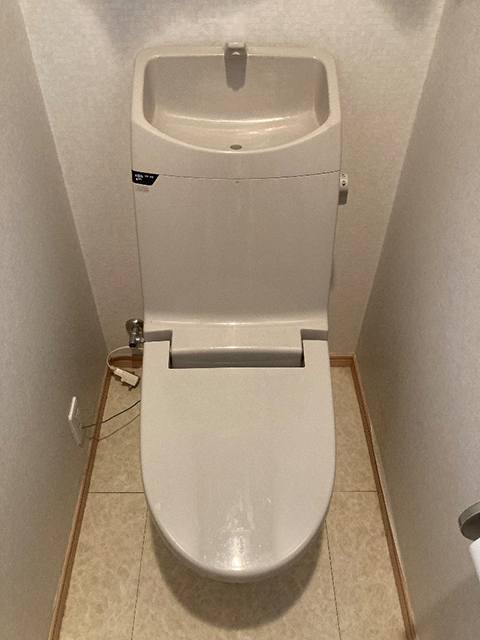 奈良県奈良市の戸建て住宅にてトイレの取替え(交換)工事をいたしました。イナックスアメージュC便器サンドベージュ GBC-110ST/SN7 から、アメージュ便器シャワートイレKAセット BC-Z30S+DT-Z380+CW-KA31/BN8 オフホワイトへ交換をいたしました。便器はフチがないのでサッとひと拭きおそうじがラクラクです。