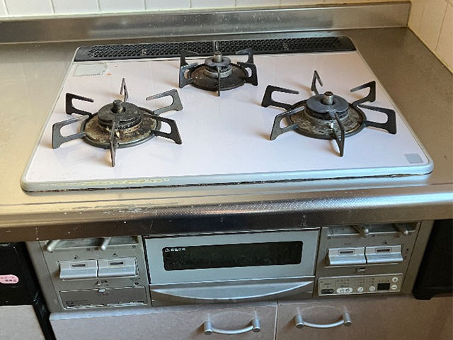 大阪府東大阪市の戸建て住宅にてビルトインコンロの取替え(交換)工事をいたしました。大阪ガス 110-R672(RB38W3KRL) から、パロマリプラハイパーガラスコートトップティアラシルバー PD-509WS-60CV へ交換をしました。ハイパーガラスコートは汚れもサッと拭き取れ、衝撃に強くキズがつきにくい材質で、艶やかな鏡のような光沢で、重い物を落としてもひび割れの心配がないコンロです。
