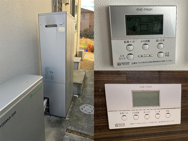 奈良県香芝市の戸建て住宅にてエネファームからエコジョーズ給湯暖房機へ取替え(交換)工事をいたしました。大阪ガスエネファーム 136-CF02(FCG-202-DR)から、ノーリツ24号エコジョーズ給湯暖房機 GTH-C2459AW3H-1 へ交換いたしました。