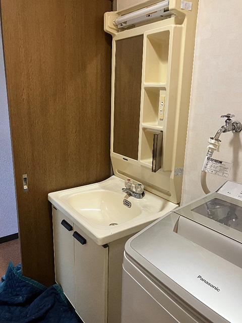 大阪府東大阪市にて洗面台交換 リクシルPVななつポケットシングルレバー洗髪吐水切替付