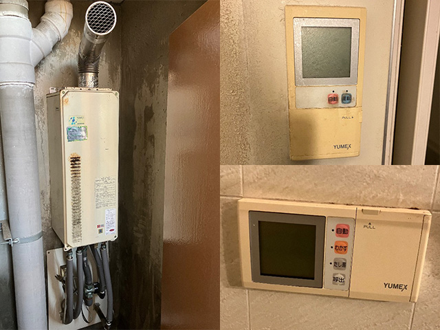 大阪府大阪市城東区のマンションにて前方排気型給湯器の取替え(交換)工事をいたしました。ガスター16号オート OURB-1601DSA-CU から、リンナイ16号オート RUF-SA1615SAT-L(A)80 へ交換いたしました。