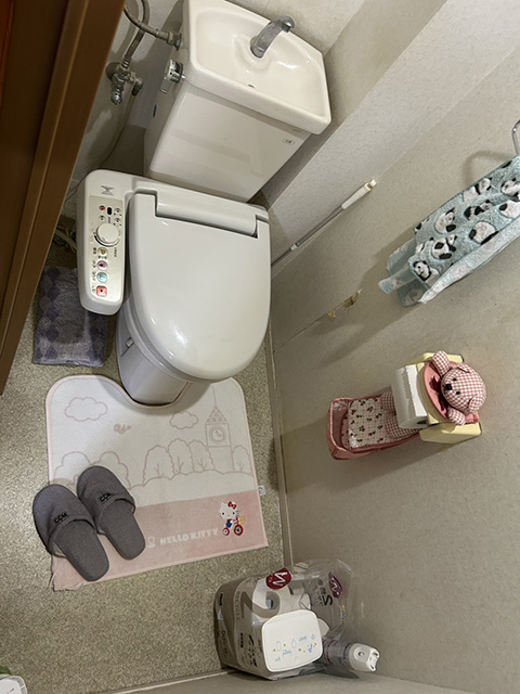 大阪府大阪市城東区のマンションにてトイレリフォーム工事をいたしました。TOTO便器 C730 から、アメージュ便器アクアセラミックシャワートイレKA31セット YBC-Z30H+YDT-Z380HA+CW-KA31/BW1 ピュアホワイトへ交換をいたしました。便器はフチがないのでサッとひと拭きおそうじがラクラクです。
