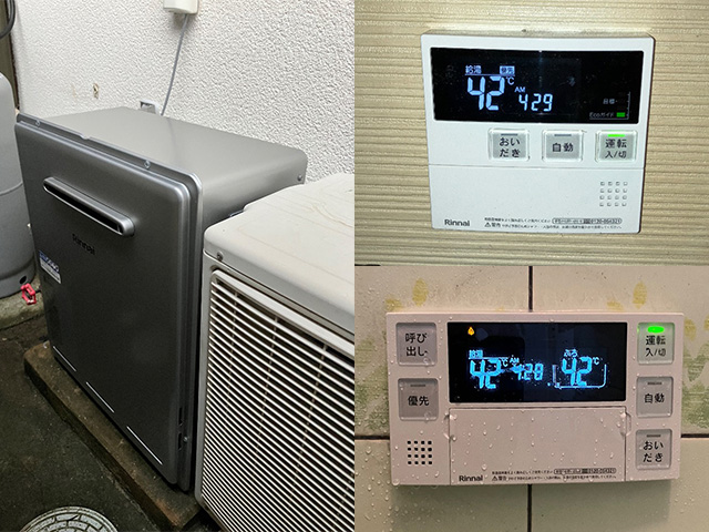 奈良県磯城郡三宅町にて浴槽隣接型給湯器交換 リンナイRFS-V2001SAからRFS-E2008SA(B) 2025/12/24 奈良県磯城郡三宅町の戸建て住宅にて浴槽隣接型給湯器の取替え(交換)工事をいたしました。リンナイ従来型20号オート RFS-V2001SA から、エコジョーズ20号オート RFS-E2008SA(B) へ交換をいたしました。 給湯王国(布施メンテナンス) 工事前工事後 写真 メーカー型番 リンナイ・RFS-V2001SA リンナイ・RFS-E2008SA(B) 当店セット価格 マルチリモコン+標準工事費(処分込)+10年商品・工事保証 193,800円 オプション ガス接続 8,800円 お支払合計 202,600円(税込)