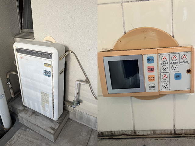 大阪府大阪市北区の市営住宅にて屋外式給湯器の取替え(交換)工事をいたしました。ガスター浴槽隣接型給湯器16号フルオート OSR-1600A から、リンナイふろ給湯器16号オート RUF-A1615SAW(C) へ交換をいたしました。