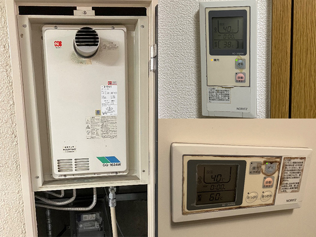 大阪府大阪市住吉区にて前方排気型給湯器交換 ノーリツGQ-162AW-TからリンナイRUJ-A1610T(A)
