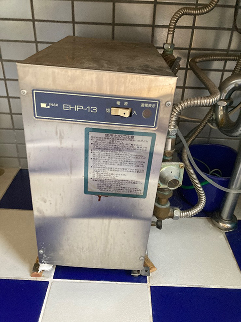 大阪府吹田市にて小型電気温水器交換 ゆプラス13LタイプEHP-13から6LタイプEHPN-F6N5 2026/03/04 大阪府吹田市の戸建て住宅の洗面所で使用されている小型電気温水器の取替え(交換)工事をいたしました。イナックス13Lタイプ EHP-13 から、6Lタイプ EHPN-F6N5 へ交換をいたしました。 給湯王国(布施メンテナンス) 工事前工事後 写真 メーカー型番 イナックス・EHP-13 リクシル・EHPN-F6N5 商品価格・工事費 6L電気温水器・排水器具 61,800円 Bエリア標準工事費(処分込) 27,500円 お支払合計 89,300円(税込)