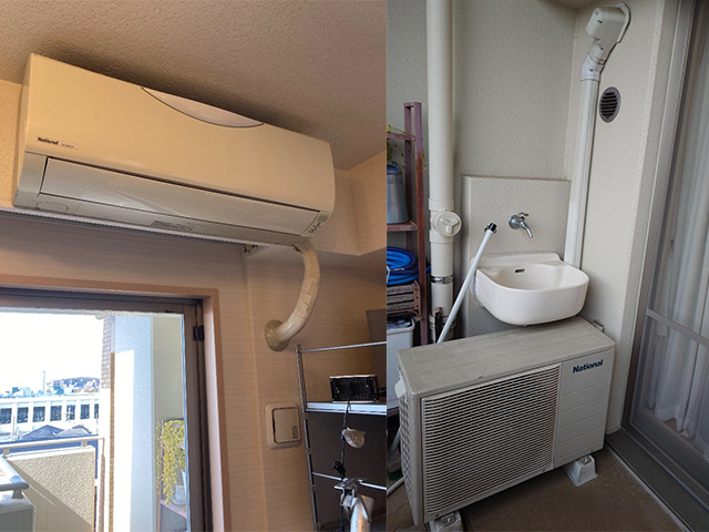 大阪府摂津市のマンションにてルームエアコンの取付け(設置)工事をいたしました。ナショナル CS-63RJX2-W から、ダイキンうるさらX4.0kW14畳用 S406ATRP-W へ交換いたしました。うるさらXは給水の手間いらず、暖房しながら屋外の空気中の水分を取り込んで加湿します。
