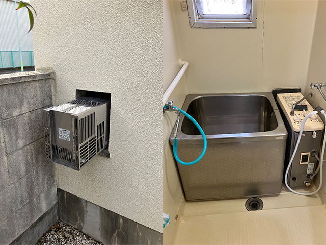 和歌山県和歌山市にてバランス釜から屋外式給湯器へ交換 パロマ16号オートFH-1613SAW-1
