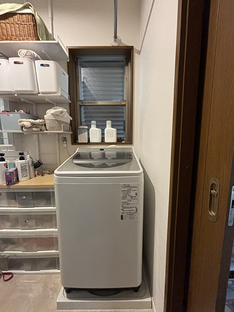 奈良県香芝市の戸建て住宅にて乾太(かんた)くんの取付け(設置)工事をいたしました。1階のランドリールームの洗濯機上に専用台(高)と8キロスタンダード RDT-80(A) を設置をいたしました。ガスのパワフルな温風により、8kgの洗濯物を約80分という短時間でふっくらと乾かします。